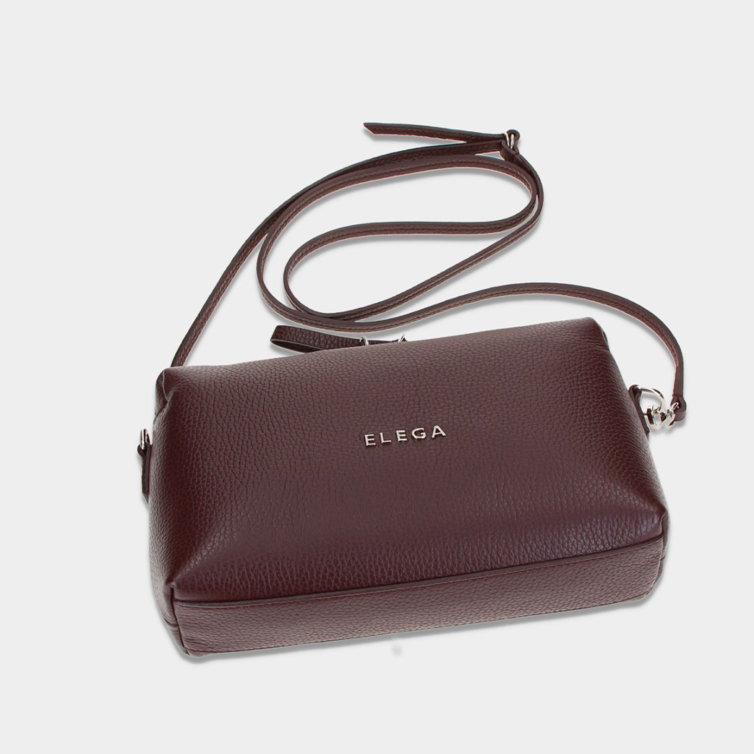 Tato kabelka je měkčí konstrukce, díky tomu pojme všechny nezbytnosti a je vybavena dvoucestným zipem. Má dlouhý, nastavitelný popruh s maximální délkou 145 cm, který lze odepnout a vyměnit dle potřeby. Délku popruhu vám můžeme i na zakázku upravit. Na předním dílu je kovové logo ELEGA.