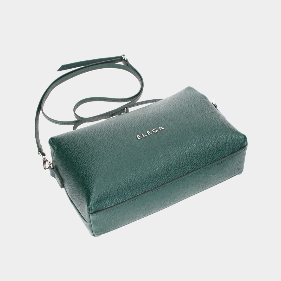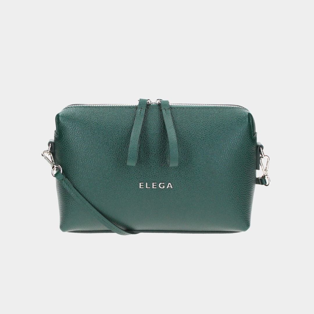 Tato kabelka je měkčí konstrukce, díky tomu pojme všechny nezbytnosti a je vybavena dvoucestným zipem. Má dlouhý, nastavitelný popruh s maximální délkou 145 cm, který lze odepnout a vyměnit dle potřeby. Délku popruhu vám můžeme i na zakázku upravit. Na předním dílu je kovové logo ELEGA.