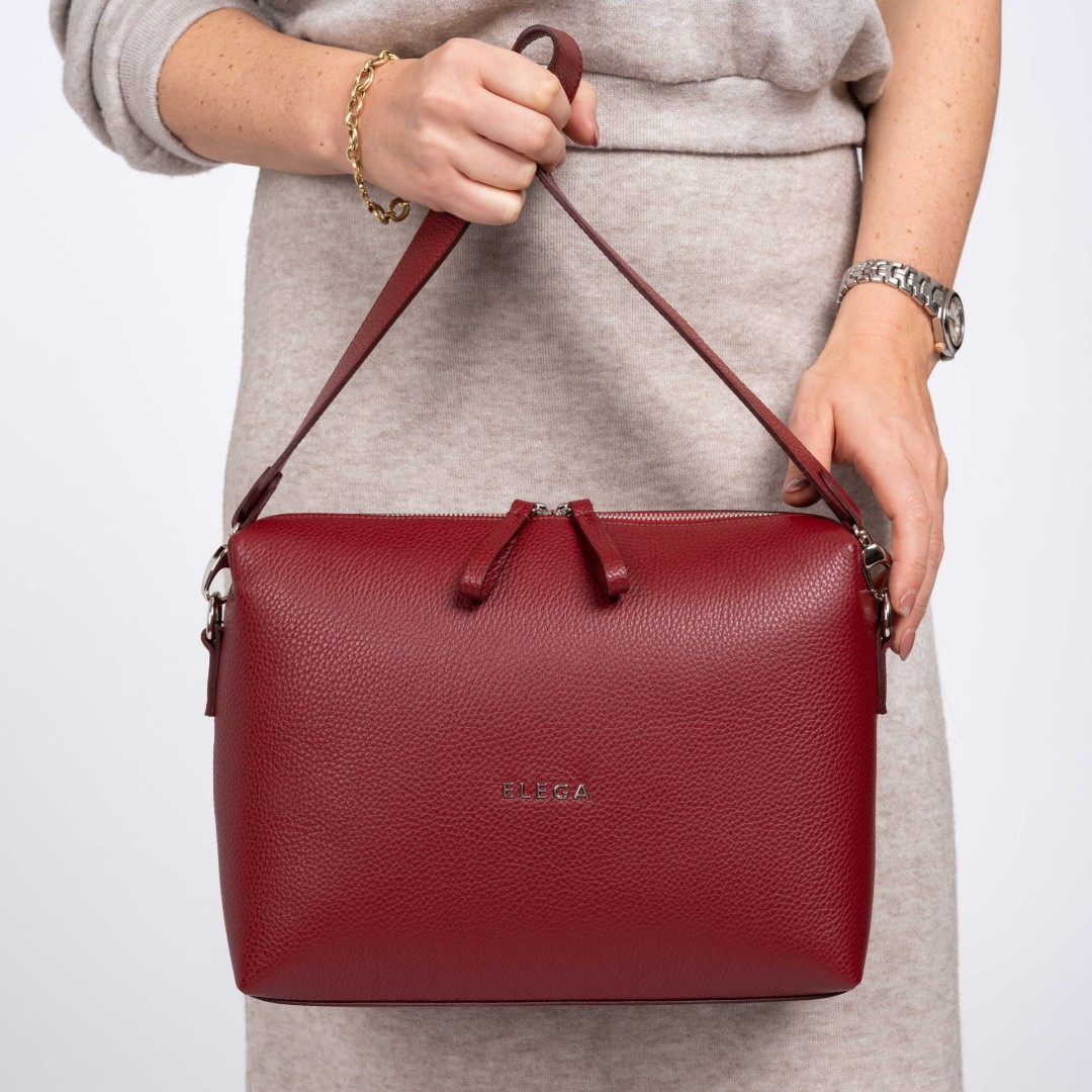 Kabelky ELEGA Hill a Hillary jsou naše bestsellery, a proto jsme pro vás rozšířili řadu o Středně velkou kabelku na rameno s krátkým držadlem. K této kabelce si, ale budete moct dokoupit i dlouhý popruh a nosit tak kabelku jako crossbody. Uvnitř se nachází jedna zipová a jedna otevřená kapsička. Další inovací je zipová kapsička na zadním díle kabelky. Na předním díle se nachází kovové logo ELEGA.
