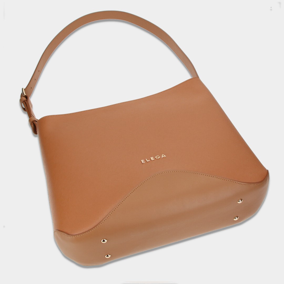 Na zadní části kabelky naleznete kapsičku pro uložení telefonu. Lze pohodlně nosit na rameni, díky popruhu, který lze regulovat. Pohodlně se do ní vejdou dokumenty o velikosti A4. Na předním díle je umístěné kovové logo ELEGA. Kabelka je uzavíraná zipem. Uvnitř je jedna zipová a jedna otevřená kapsička. Dno je chráněno kovovými nýty.