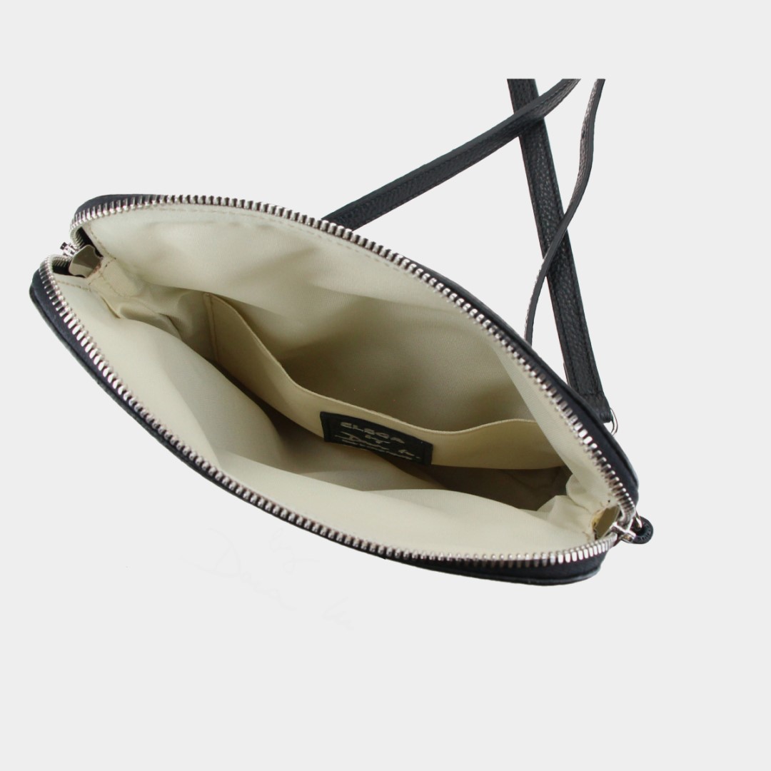 Do této malé kabelky snadno uložíte všechny své nezbytnosti, jako je malá peněženka, mobil, rtěnka a klíče. Díky poddajnému tvaru, uzavírání na dvoucestný zip a magnet máte jistotu, že vaše věci budou vždy v bezpečí. Regulovatelný popruh zdobený řetízkem a kovové logo ELEGA by Dana M. na klopně dodávají jemnou eleganci, která vás bude provázet každý den.